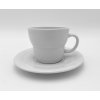 Šálek s podšálkem ve tvaru Euro. Objem šálku 150ml. Bez dekoru v bílé barvě.