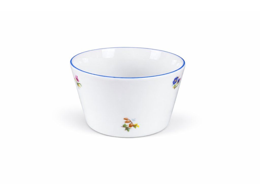 Elegantní porcelánová mistička značky Moritz Zdekauer s typickým dekorem chodovské házenky představuje nadčasový kousek českého porcelánu. Jemné květinové motivy v kombinaci s modrým okrajem dodávají mističce tradiční a zároveň svěží vzhled, který se hodí do každé domácnosti.