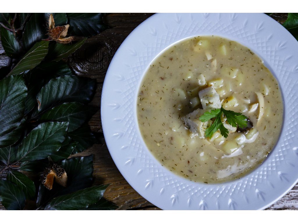 Bílá talířová souprava MZ pro 4 osoby. Netradiční vzhled talíře se zdobeným krajem.